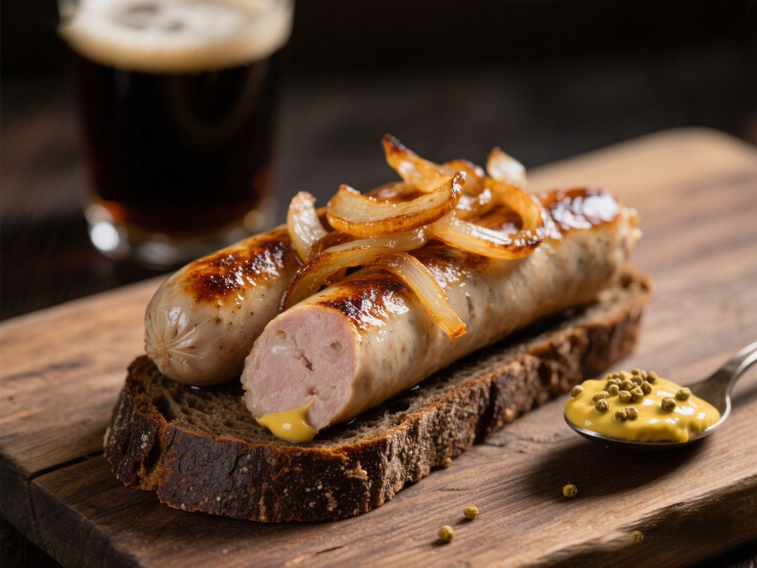 ④ 享用: 務必搭配一大碟辛辣的芥末醬。切一塊腸,連同洋蔥和面包一起放入口中,再佐一口冰鎮(zhèn)的德國黑啤或烈性艾爾啤酒,風味最是地道。