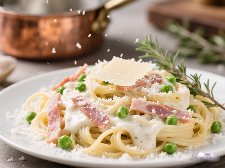 火腿的煙熏咸香融入奶油醬汁,帕瑪森奶酪提升濃郁度,15分鐘完成餐廳級料理。